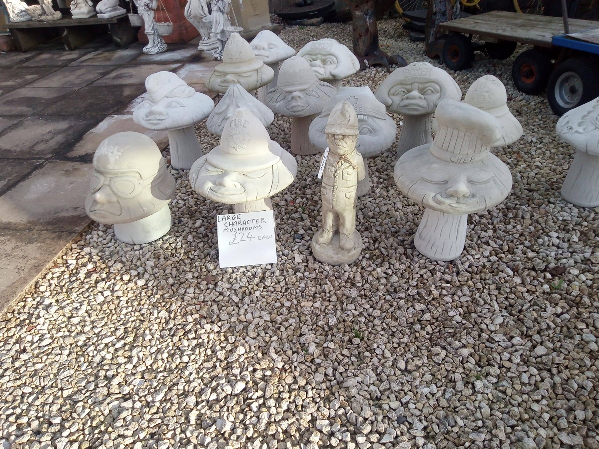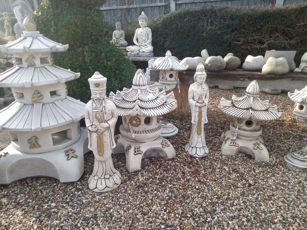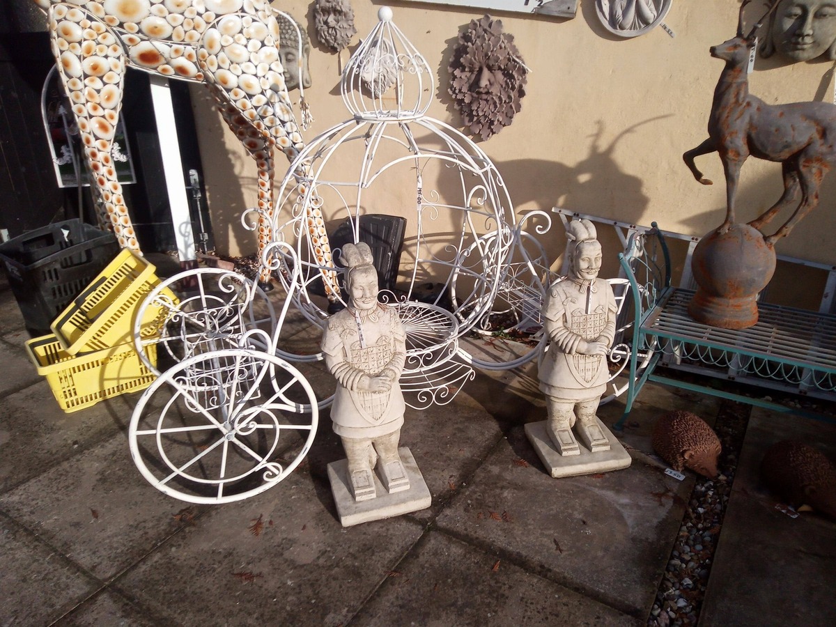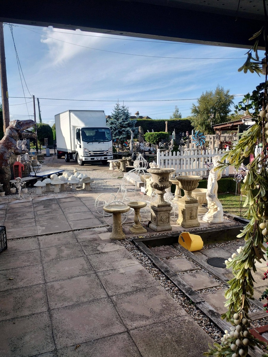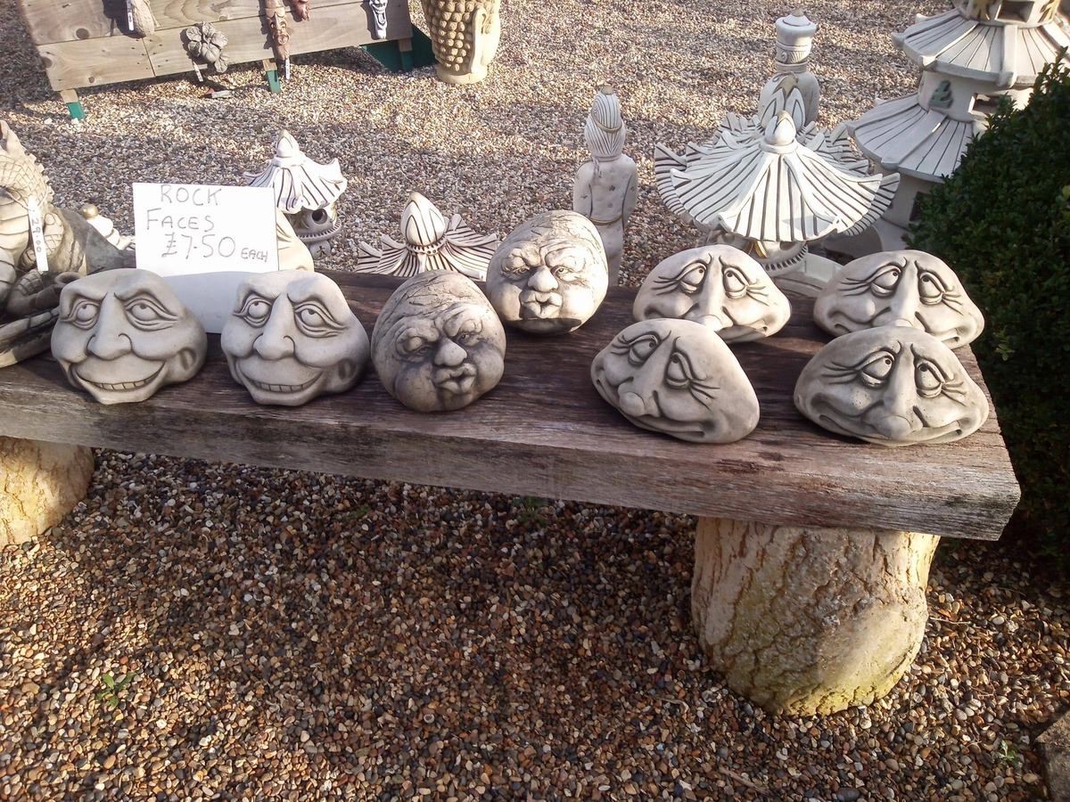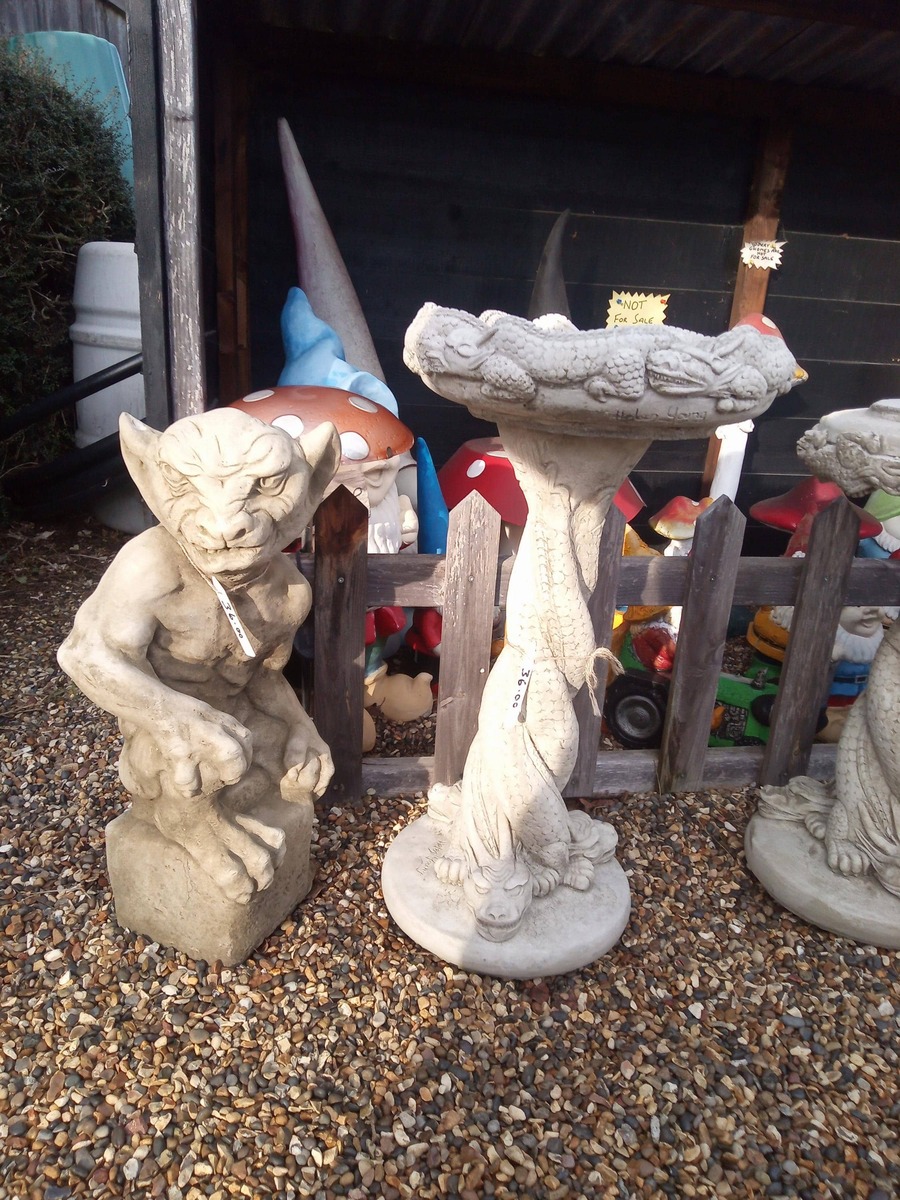 Garden figurines, plaques, foo dogs, cats, pagodas, angels, fairies, tin man, hanging monkeys, gorilla's, Bakers mirrors, metal flower stakes, wall art, cherubs, items suitable for memorials and ashes, spare bird bath top, spare bench and seat tops, Hedleys, Sovereign, Stancombe stone, Astons, Whelans, cement, hand cast painted grey concrete products, reproduction antique ornaments, balls, spheres, pineapples, gardening ideas, gardeners ideas near the ashberry homes elizabeth gardens and bellway developments, come see our display in a unique setting in Rochford Essex UK, maybe visit when you come to the garden show, craft show, fobbing, plant perfections, hyde hall, scott's, altons, woodside, summerhill, southend airport.
